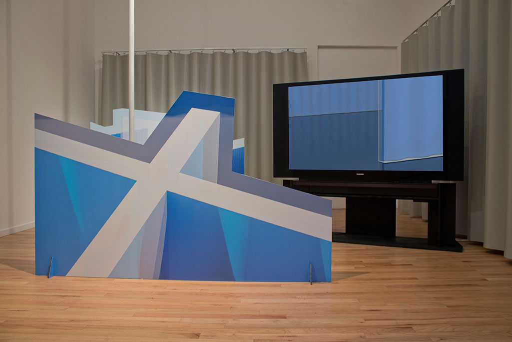 "Continuum Model" features new digitally animated works, in concert with sculptural objects, sound works and architectural interventions. This body of work is based around the diagrams and schematics often employed by technology and resource-based industries. Working with local artists Barry Doupé, Julian Hou, and Pietro Sammarco, Sailly represents abstracted images of industrial processes through a range of technologies, creating textures both virtual and concrete.